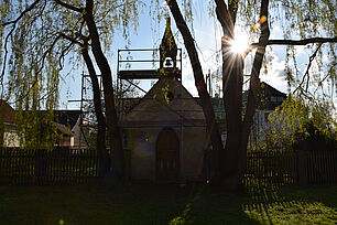 Ende April wurde als zweiter Schritt ein Gerüst aufgestellt, um die anstehenden Arbeiten durchführen zu können.